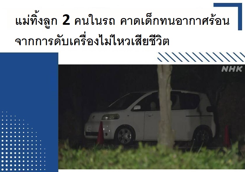 แม่ทิ้งลูก 2 คนในรถ คาดเด็กทนอากาศร้อนจากการดับเครื่องไม่ไหวเสียชีวิต