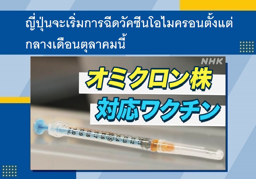 วันที่ 8 สิงหาคม กระทรวงสาธารณสุข แรงงาน และสวัสดิการของญี่ปุ่น ตัดสินใจเริ่มการฉีดวัคซีนป้องกันโควิด-19 สายพันธุ์โอไมครอนตั้งแต่กลางเดือนตุลาคมนี้สำหรับผู้ที่ฉีดวัคซีนป้องกันโควิด-19 เข็มที่ 2 แล้ว