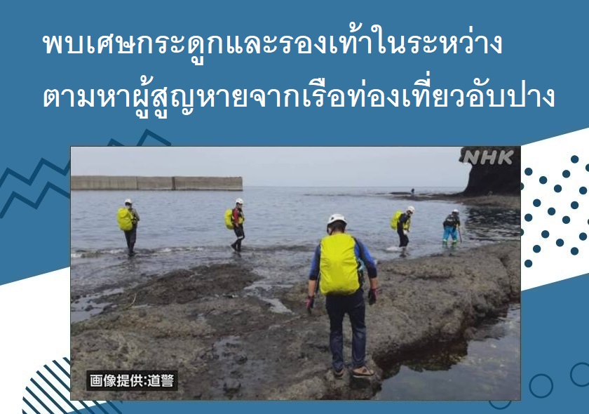 หลังจากนี้สำนักงานความมั่นคงทางทะเลของญี่ปุ่นจะนำเศษกระดูกที่พบทั้ง 13 ชิ้นไปตรวจสอบ DNA ว่าตรงกับหนึ่งในผู้สูญหายที่เหลืออีก 12 คนหรือไม่