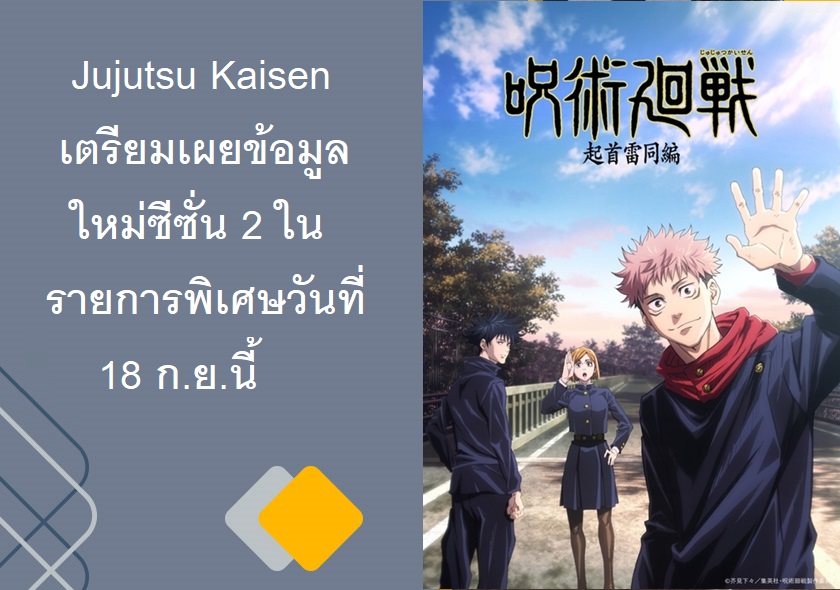 Jujutsu Kaisen เตรียมเผยข้อมูลใหม่ซีซั่น 2 ในรายการพิเศษวันที่ 18 ก.ย.นี้