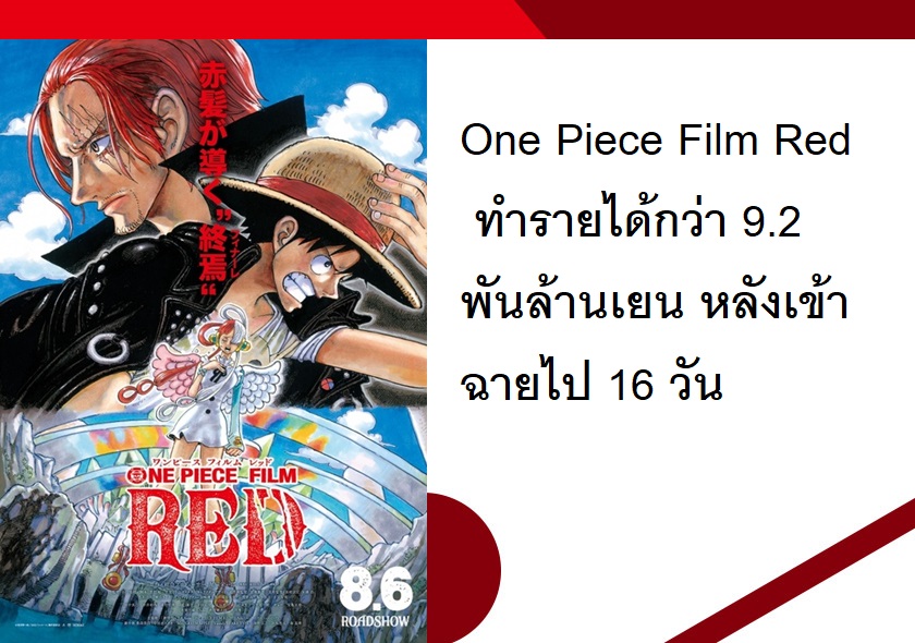 One Piece Film Red ทำรายได้กว่า 9.2 พันล้านเยน หลังเข้าฉายไป 16 วัน