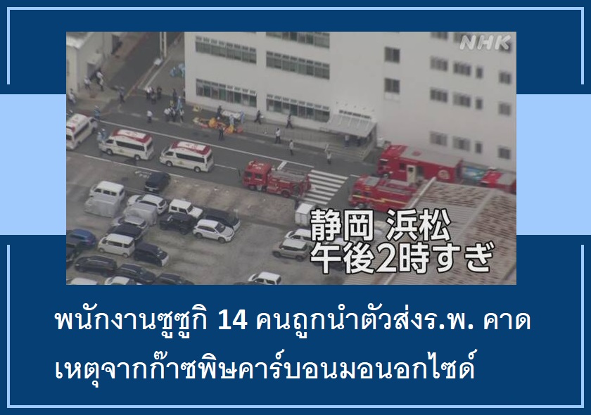 พนักงานซูซูกิ 14 คนถูกนำตัวส่งร.พ. คาดเหตุจากก๊าซพิษคาร์บอนมอนอกไซด์