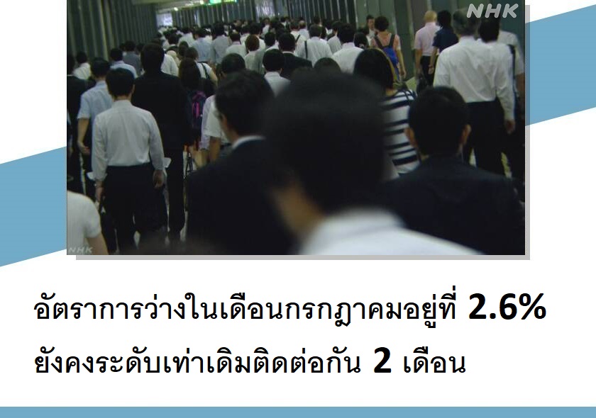 ส่งผลให้อัตราการว่างงานในเดือนกรกฎาคมอยู่ที่ราว 2.6% เช่นเดียวกับในเดือนมิถุนายน และยังคงระดับเท่าเดิมติดต่อกันเป็นเดือนที่ 2