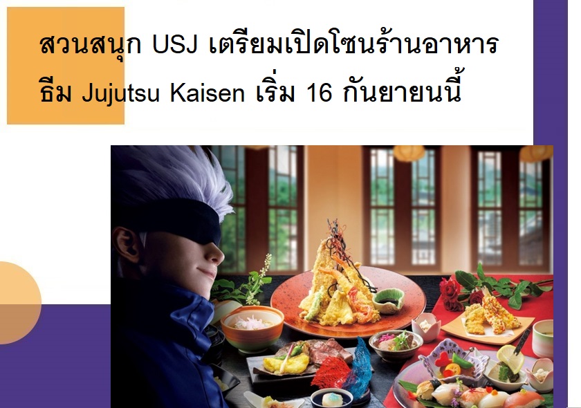 สวนสนุก Universal Studios Japan หรือ USJ ในจังหวัดโอซาก้า ประกาศเปิดโซนร้านอาหารธีม Jujutsu Kaisen หรือในชื่อไทยว่า มหาเวทย์ผนึกมาร ซึ่งเป็นการโคลาโบเลชั่นร่วมกับอนิเมะเรื่องดังกล่าวนั่นเอง