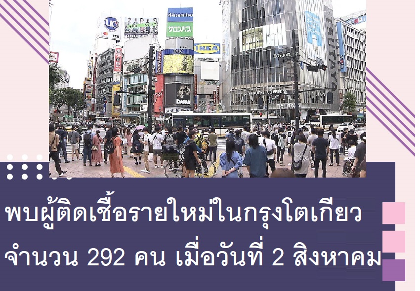 พบผู้ติดเชื้อรายใหม่ในกรุงโตเกียวจำนวน 292 คน เมื่อวันที่ 2 สิงหาคม