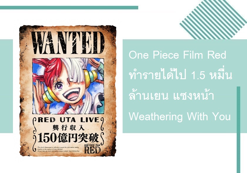 One Piece Film Red ทำรายได้ไป 1.5 หมื่นล้านเยน แซงหน้า Weathering With You