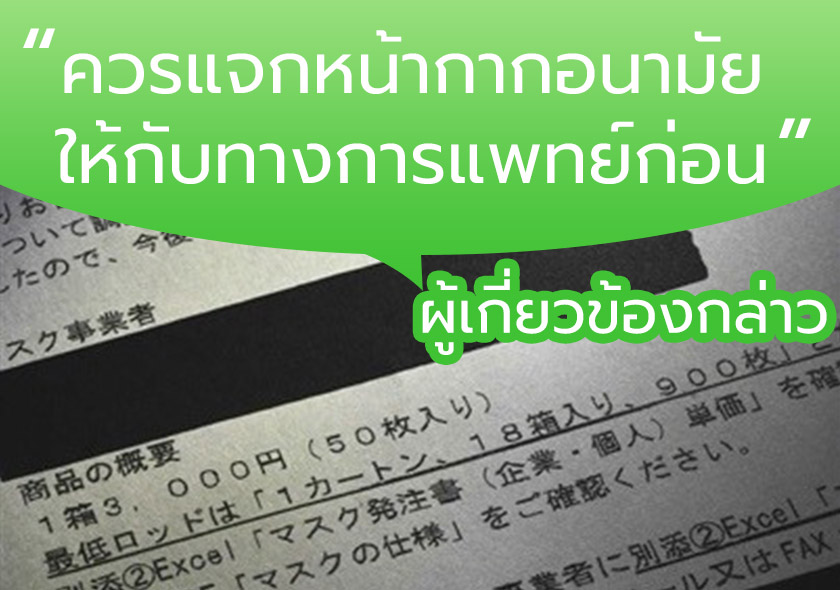 ผู้เกี่ยวข้องกล่าว "ควรแจกจ่ายหน้ากากอนามัยให้กับทางการแพทย์ก่อน"