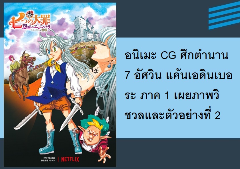 อนิเมะ CG ศึกตำนาน 7 อัศวิน: แค้นเอดินเบอระ ภาค 1 (The Seven Deadly Sins: Grudge of Edinburgh Part 1) เผยภาพวิชวลซึ่งวาดโดยอาจารย์ซูซูกิ นาคาบะ ผู้วาดมังงะต้นฉบับ และตัวอย่างที่ 2 ออกมาแล้ว
