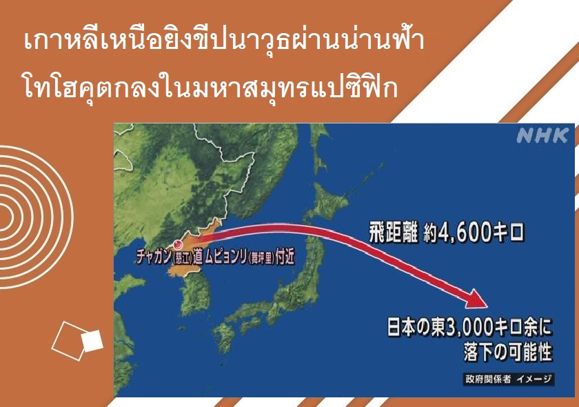 เกาหลีเหนือยิงขีปนาวุธผ่านน่านฟ้าโทโฮคุตกลงในมหาสมุทรแปซิฟิก