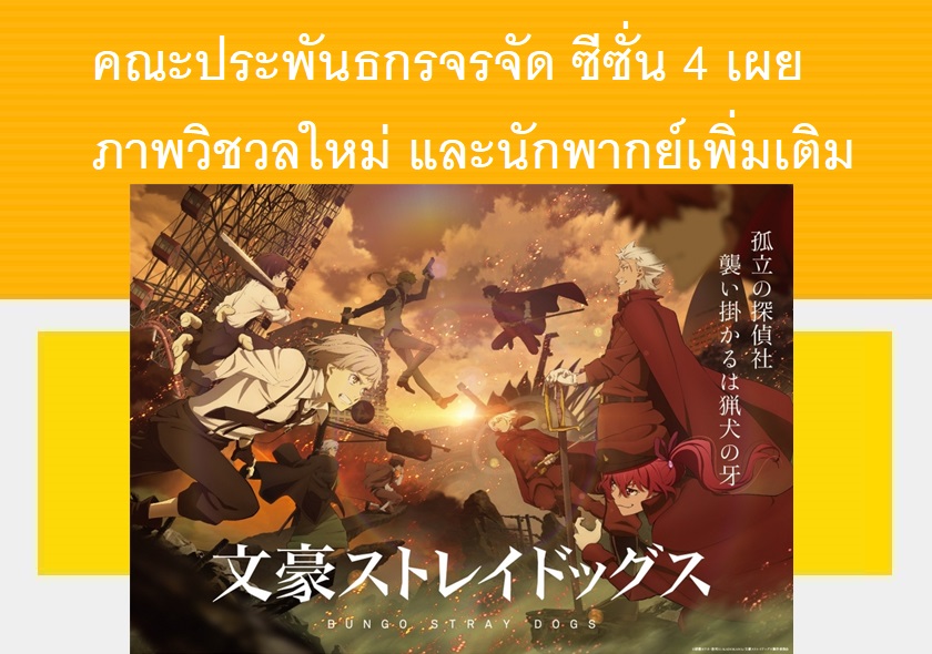 ทวิตเตอร์ทางการของอนิเมะ คณะประพันธกรจรจัด (Bungou Stray Dogs) ได้เผยภาพวิชวลใหม่ของทีวีอนิเมะซีซั่น 4 และยังได้ประกาศนักพากย์เพิ่มเติมออกมาแล้ว