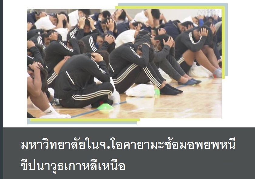มหาวิทยาลัยในจ.โอคายามะซ้อมอพยพหนีขีปนาวุธเกาหลีเหนือ