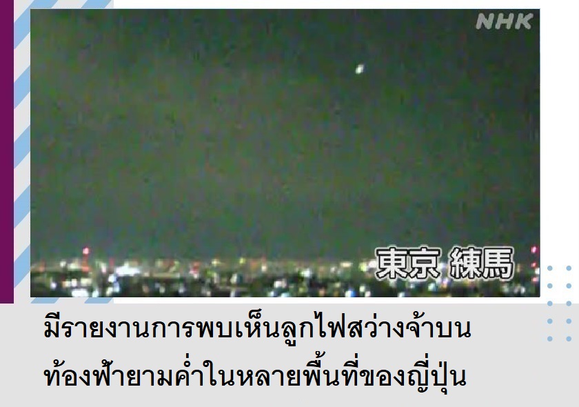 มีรายงานการพบเห็นลูกไฟสว่างจ้าบนท้องฟ้ายามค่ำในหลายพื้นที่ของญี่ปุ่น