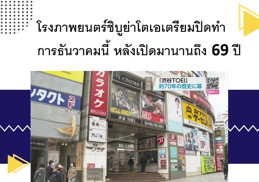 โรงภาพยนตร์ชิบูย่าโตเอเตรียมปิดทำการธันวาคมนี้ หลังเปิดมานานถึง 69 ปี