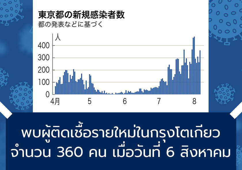 พบผู้ติดเชื้อรายใหม่ในกรุงโตเกียวจำนวน 360 คน เมื่อวันที่ 6 สิงหาคม