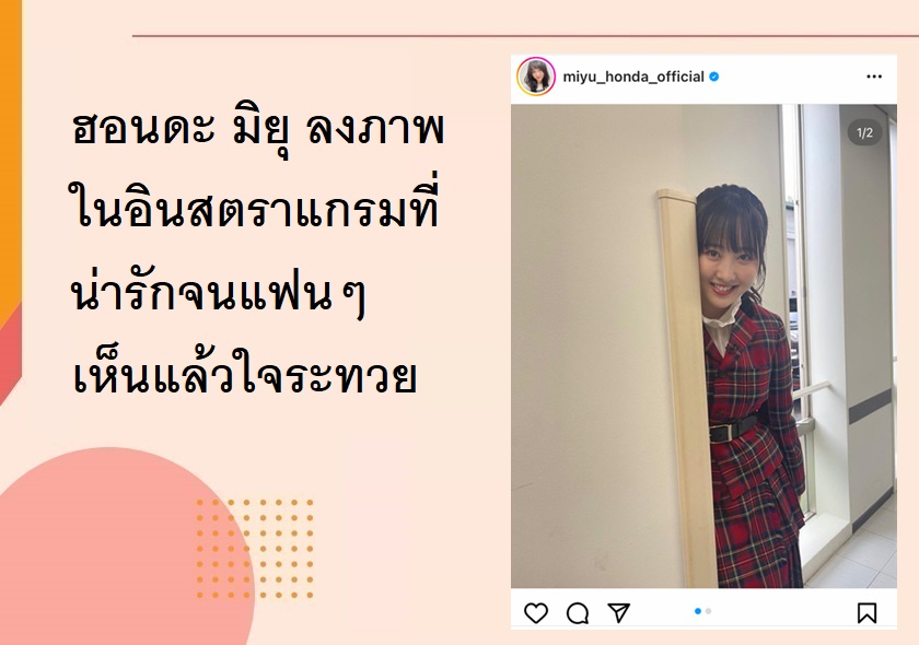คุณฮอนดะ มิยุ นักแสดงและนักกีฬาฟิกเกอร์สเก็ตชาวญี่ปุ่นวัย 18 ปีได้ลงรูปตัวเองในอินตราแกรมด้วยท่าทางและรอยยิ้มน่ารักสดใสในชุดสีแดงลายตารางหมากรุกถึง 2 รูปที่แฟนๆ เห็นแล้วเป็นต้องใจระทวยกันเลยทีเดียว