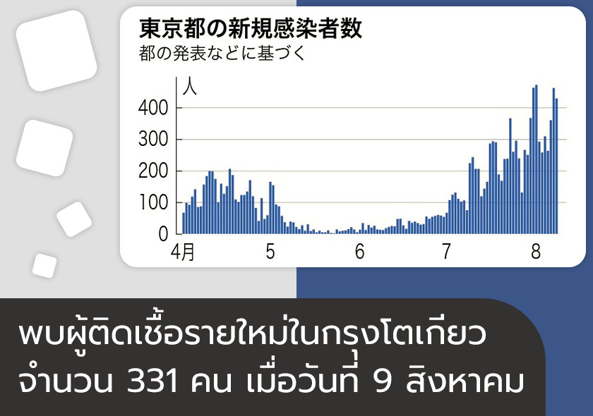 พบผู้ติดเชื้อรายใหม่ในกรุงโตเกียวจำนวน 331 คน เมื่อวันที่ 9 สิงหาคม