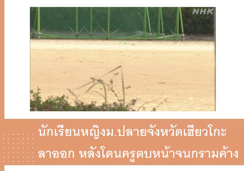 เมื่อเดือนกันยายนที่ผ่านมา ได้เกิดเหตุนักเรียนหญิงชั้นม.4 ของโรงเรียนมัธยมปลายฮาริมะ จังหวัดเฮียวโกะ ถูกครูที่ปรึกษาชมรมซอฟต์บอลตบหน้าจนกรามค้าง เพราะโมโหที่เธอลืมนำชุดยูนิฟอร์มสำหรับการแข่งมา จนเธอต้องเข้ารับการรักษาเป็นเวลา 1 เดือน