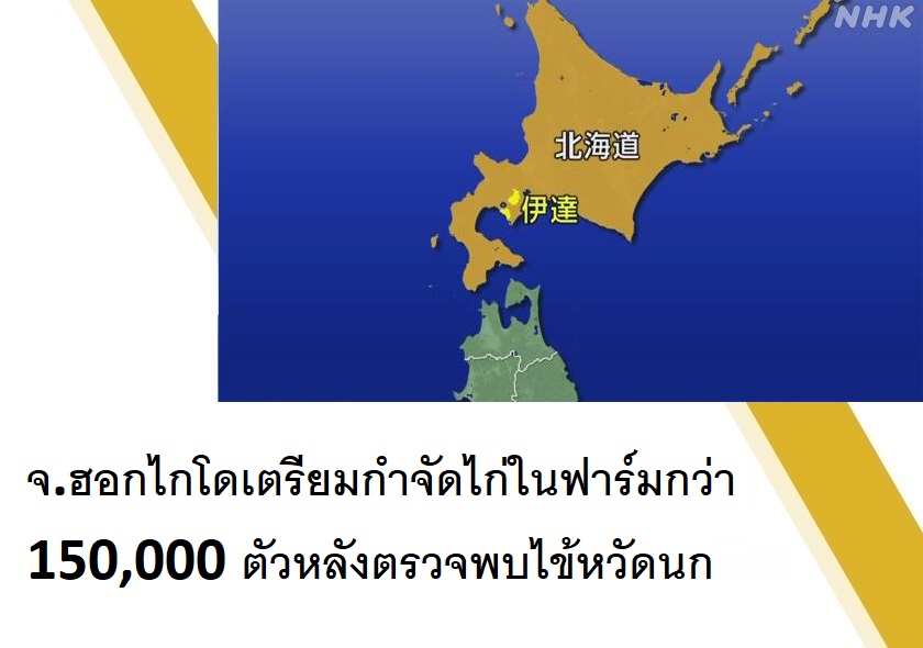 จ.ฮอกไกโดเตรียมกำจัดไก่ในฟาร์มกว่า 150,000 ตัวหลังตรวจพบไข้หวัดนก