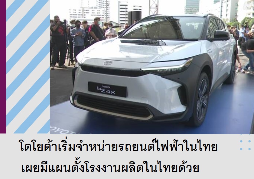 วันที่ 9 พฤศจิกายน บริษัท โตโยต้า มอเตอร์ คอร์ปอเรชั่น ได้จัดงานเปิดตัวรถยนต์ไฟฟ้า (EV) รุ่นแรกในไทยขึ้นที่กรุงเทพฯ โดยมีชื่อรุ่นว่า "bZ4X" สนนราคาอยู่ที่ 1,836,000 บาท