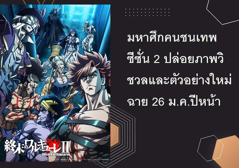 ทวิตเตอร์ทางการของอนิเมะ "Shuumatsu no Valkyrie" หรือในชื่อไทยว่า "มหาศึกคนชนเทพ" ได้ปล่อยภาพวิชวลและตัวอย่างใหม่ของซีซั่น 2 ออกมาแล้ว