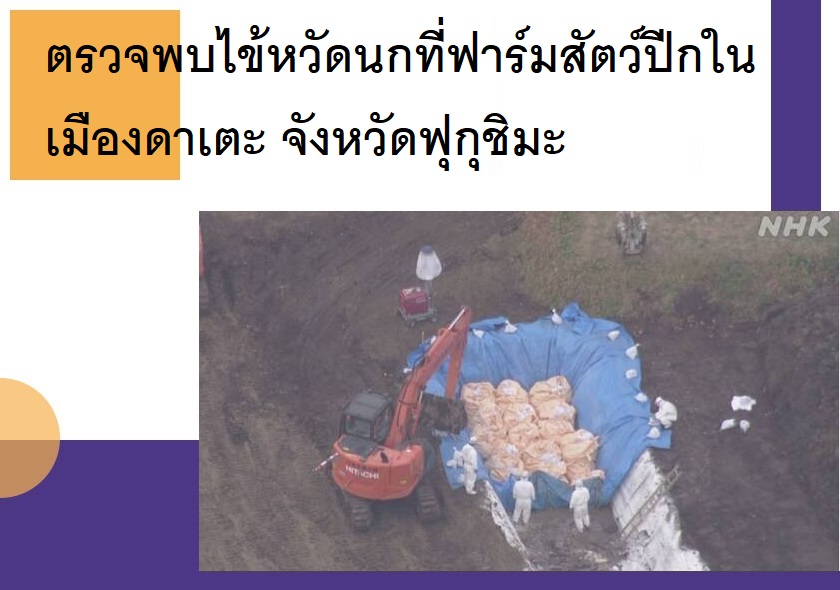 ตรวจพบไข้หวัดนกที่ฟาร์มสัตว์ปีกในเมืองดาเตะ จังหวัดฟุกุชิมะ