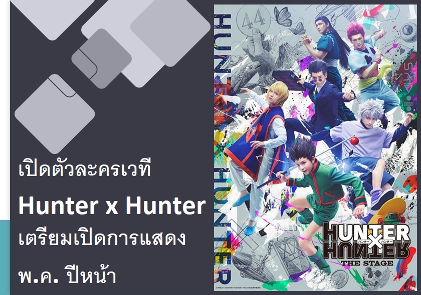 Hunter x Hunter (ฮันเตอร์ x ฮันเตอร์) มังงะยอดฮิตของอาจารย์โทงาชิ โยชิฮิโระ (Togashi Yoshihiro) ที่เพิ่งกลับมาตีพิมพ์ตอนใหม่อีกครั้งในรอบเกือบ 4 ปี ได้มีการประกาศสร้างในรูปแบบละครเวที พร้อมกับเผยภาพวิชวลและคลิปวิดีโอเปิดตัวออกมาแล้ว