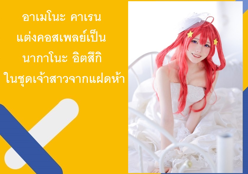 อาเมโนะ คาเรน แต่งคอสเพลย์เป็น นากาโนะ อิตสึกิ ในชุดเจ้าสาวจากแฝดห้า