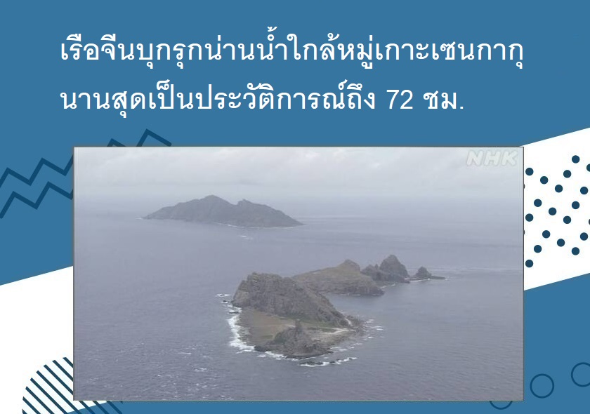 เรือจีนบุกรุกน่านน้ำใกล้หมู่เกาะเซนกากุนานสุดเป็นประวัติการณ์ถึง 72 ชม.