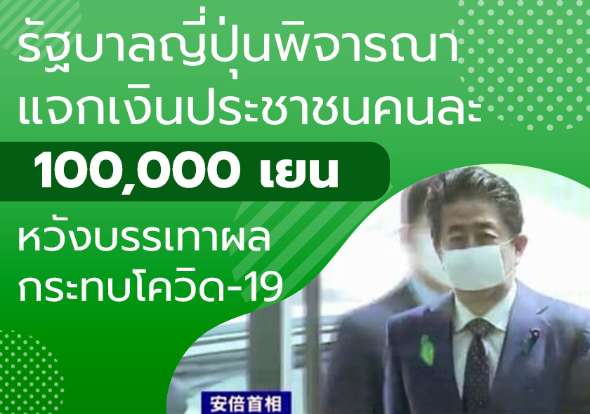 รัฐบาลญี่ปุ่นพิจารณาแจกเงินประชาชนคนละ 100,000 เยน หวังบรรเทาผลกระทบโควิด-19