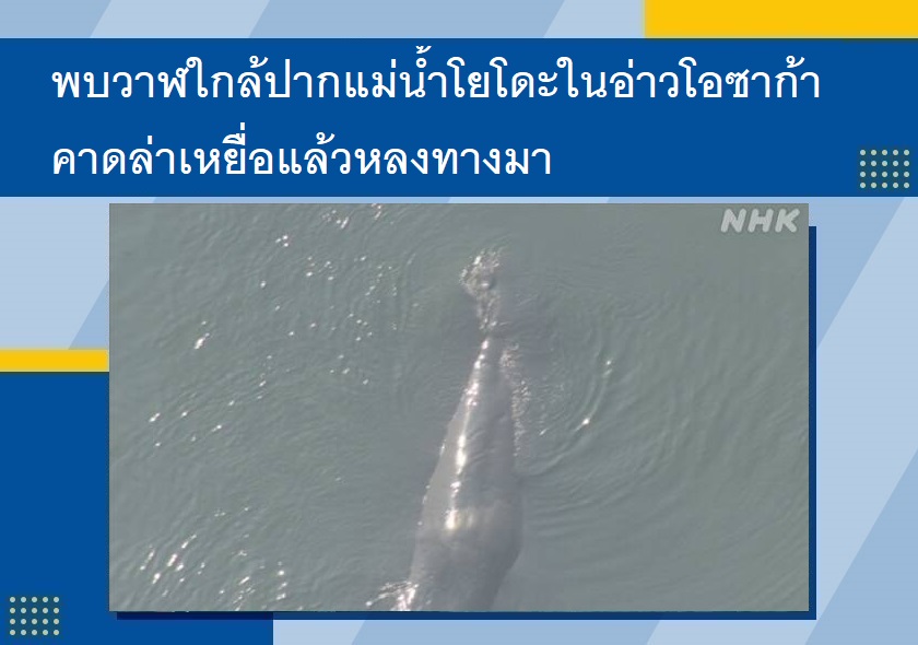 พบวาฬใกล้ปากแม่น้ำโยโดะในอ่าวโอซาก้า คาดล่าเหยื่อแล้วหลงทางมา