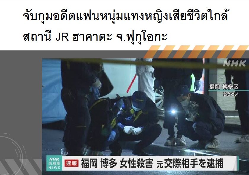 จับกุมอดีตแฟนหนุ่มแทงหญิงเสียชีวิตใกล้สถานี JR ฮาคาตะ จ.ฟุกุโอกะ