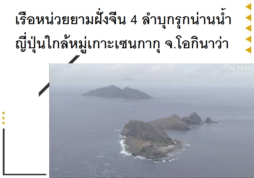 เรือหน่วยยามฝั่งจีน 4 ลำบุกรุกน่านน้ำญี่ปุ่นใกล้หมู่เกาะเซนกากุ จ.โอกินาว่า