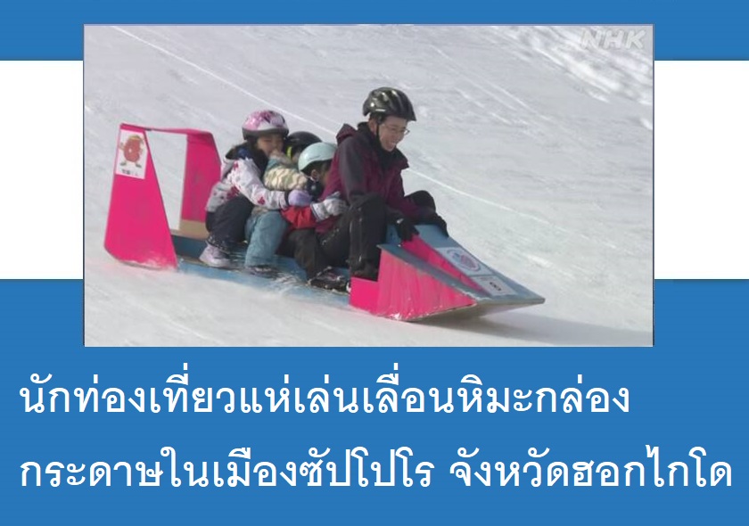นักท่องเที่ยวแห่เล่นเลื่อนหิมะกล่องกระดาษในเมืองซัปโปโร จังหวัดฮอกไกโด