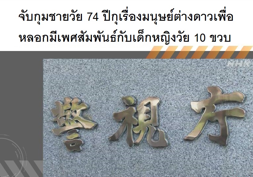 ชายญี่ปุ่นวัยุ 74 ปี ไม่ทราบอาชีพ อาศัยอยู่ในเมืองฮิงาชิยามาโมโตะ กรุงโตเกียว ได้ถูกตำรวจจับกุมในฐานะผู้ต้องหาหลอกมีเพศสัมพันธ์กับเด็กวัยประมาณ 10 ขวบ