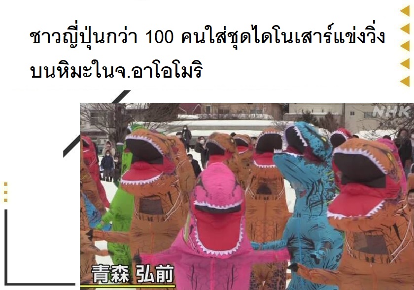 ชาวญี่ปุ่นกว่า 100 คนใส่ชุดไดโนเสาร์แข่งวิ่งบนหิมะในจ.อาโอโมริ