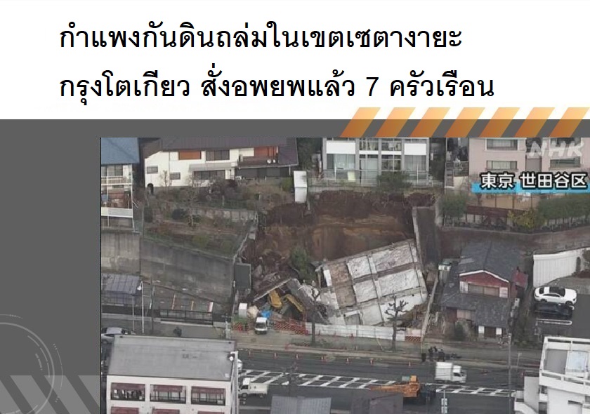 กำแพงกันดินถล่มในเขตเซตางายะ กรุงโตเกียว สั่งอพยพแล้ว 7 ครัวเรือน