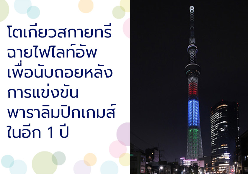 โตเกียวสกายทรีฉายไฟไลท์อัพเพื่อนับถอยหลังการแข่งขันพาราลิมปิกเกมส์ในอีก 1 ปี