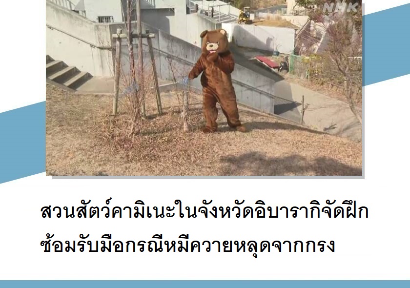สวนสัตว์คามิเนะ เมืองฮิตาชิ จังหวัดอิบารากิ ได้จัดการฝึกซ้อมโดยสมมติสถานการณ์ว่ามีหมีควายหลุดออกจากกรง เพื่อให้เจ้าหน้าที่สามารถรับมือได้ทันท่วงที ซึ่งเป็นการฝึกที่จะจัดขึ้นปีละครั้งเป็นประจำทุกปี