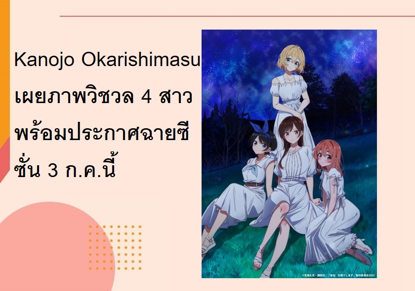 ทวิตเตอร์ทางการของอนิเมะ "Kanojo Okarishimasu" หรือ "สะดุดรักยัยแฟนเช่า" ซีซั่น 3 ได้ปล่อยภาพทีเซอร์วิชวลของ 4 สาวตัวละครหลักออกมาแล้ว