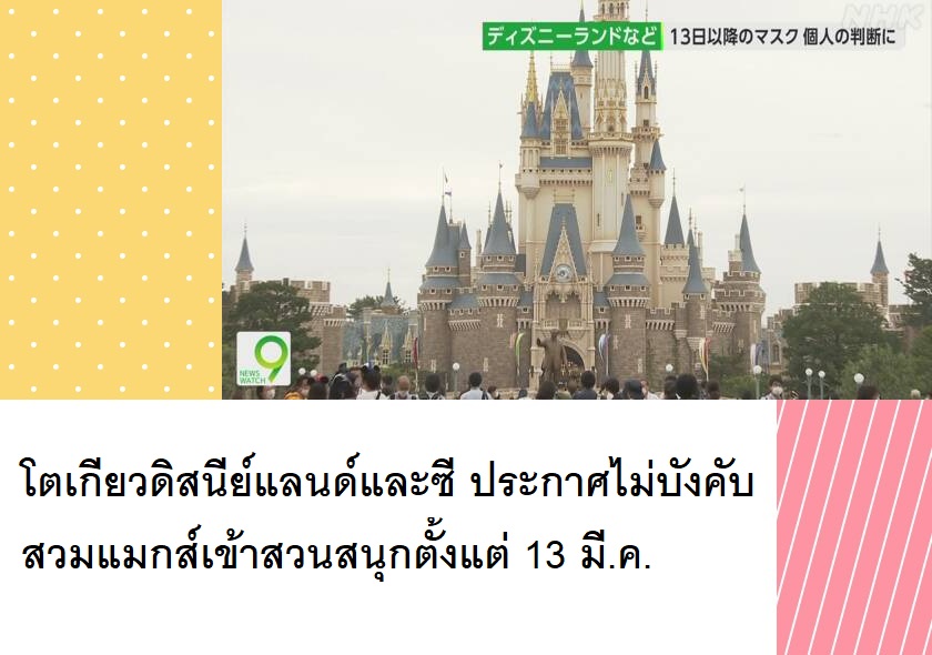 โตเกียวดิสนีย์แลนด์และซี ประกาศไม่บังคับสวมแมกส์เข้าสวนสนุกตั้งแต่ 13 มี.ค.