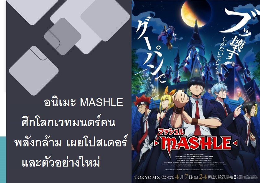 ทวิตเตอร์ทางการของอนิเมะ MASHLE ศึกโลกเวทมนตร์คนพลังกล้าม ได้เผยภาพวิชวลและตัวอย่างใหม่ รวมถึงเพลง OP-ED และนักพากย์เพิ่มเติมออกมาแล้ว