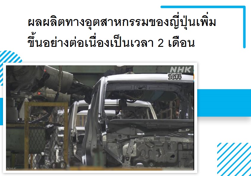 ผลผลิตทางอุตสาหกรรมของญี่ปุ่นเพิ่มขึ้นอย่างต่อเนื่องเป็นเวลา 2 เดือน