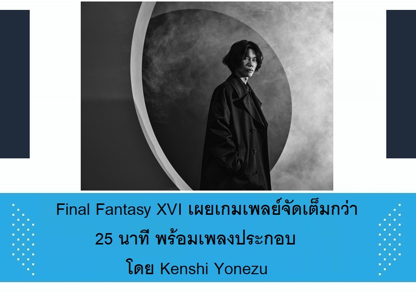 ในไลฟ์สด State of Play ที่ทาง Sony จัดขึ้นเมื่อวันที่ 14 เมษายนที่ผ่านมา ได้มีการเผยตัวอย่างเกมเพลย์ใหม่ของเกม Final Fantasy XVI ที่จัดเต็มด้วยความยาวกว่า 25 นาที พร้อมเพลงประกอบโดยเคนชิ โยเนสึ (Kenshi Yonezu) ศิลปินชื่อดังของญี่ปุ่น