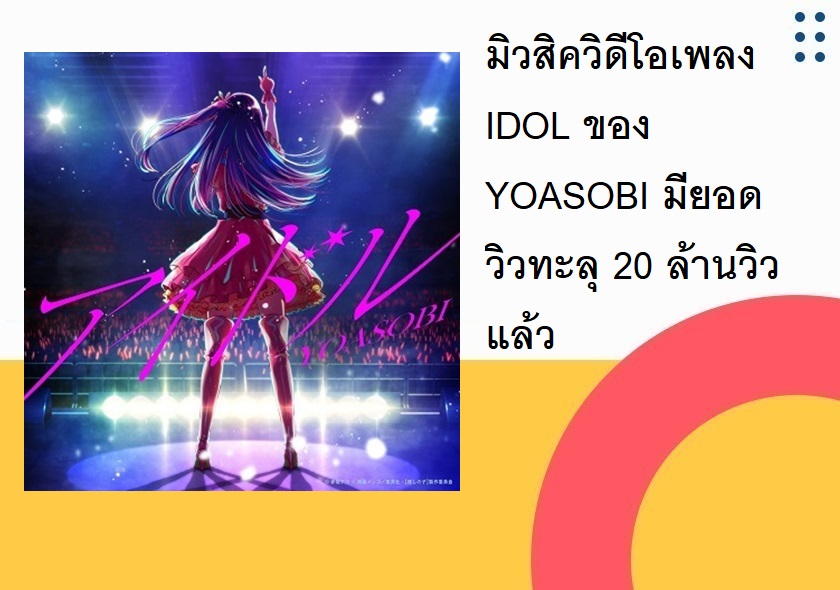 มิวสิควิดีโอเพลง IDOL ของ YOASOBI ซึ่งเป็นเพลง OP ของอนิเมะ Oshi no Ko (เกิดใหม่เป็นลูกโอชิ) มียอดวิวมากกว่า 20 วิวภายในระยะเวลาเพียง 6 วันหลังจากที่ปล่อยคลิป