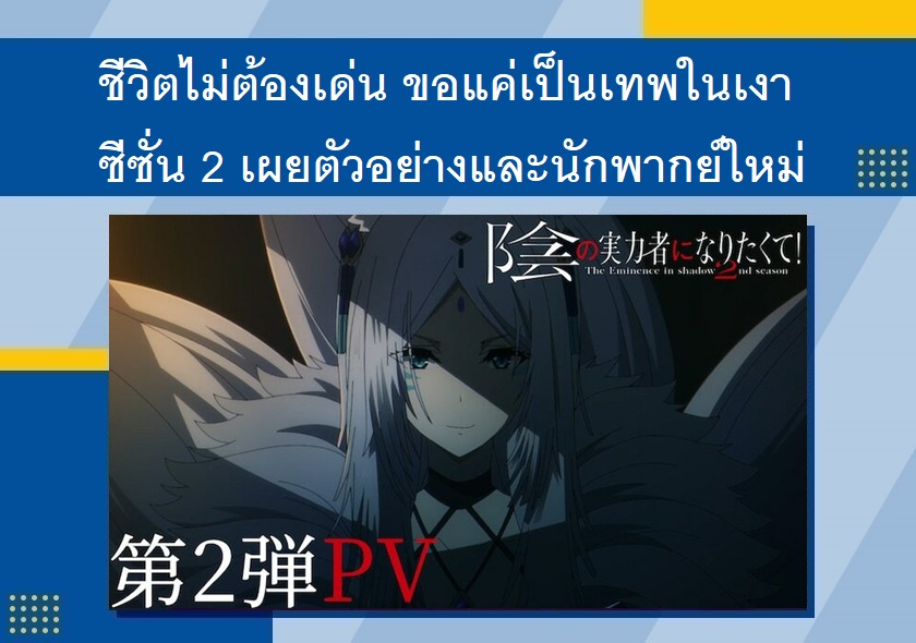 ทวิตเตอร์ทางการของอนิเมะ ชีวิตไม่ต้องเด่น ขอแค่เป็นเทพในเงา (Kage no Jitsuryokusha ni Naritakute!) ซีซั่น 2 ได้เผยตัวอย่างใหม่และนักพากย์เพิ่มเติมออกมาแล้ว