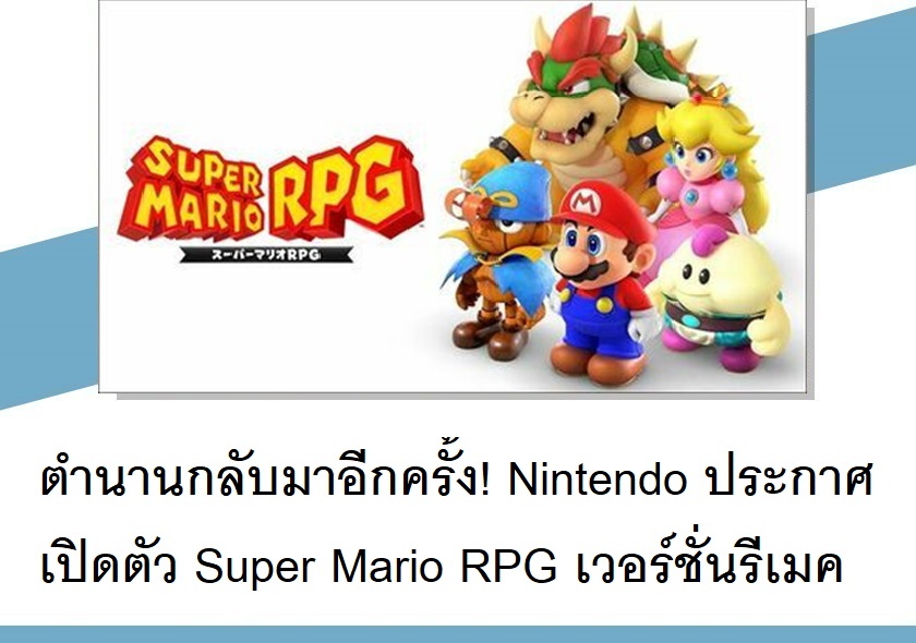 Nintendo ประกาศเปิดตัวเกม Super Mario RPG เวอร์ชั่นรีเมคจากเกมชื่อเดียวกันที่เคยวางจำหน่ายบนเครื่อง Super Famicom ในปี 1996 พร้อมกับปล่อยตัวอย่างแรกออกมาแล้ว