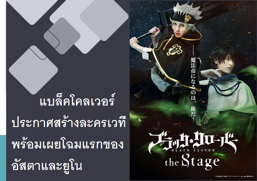 แบล็คโคลเวอร์ (Black Clover) มังงะชื่อดังของอาจารย์ทาบาตะ ยูกิ ประกาศสร้างละครเวทีในชื่อ "Black Clover the Stage" พร้อมเผยภาพวิชวลและโฉมแรกของนักแสดงที่รับบทอัสตาและยูโนแล้ว
