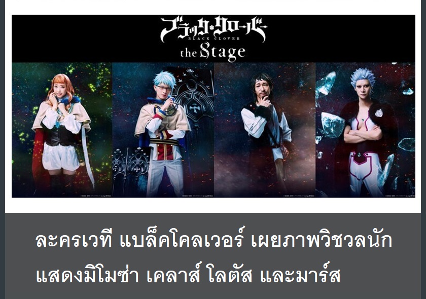 ละครเวที แบล็คโคลเวอร์ เผยภาพวิชวลนักแสดงมิโมซ่า เคลาส์ โลตัส และมาร์ส