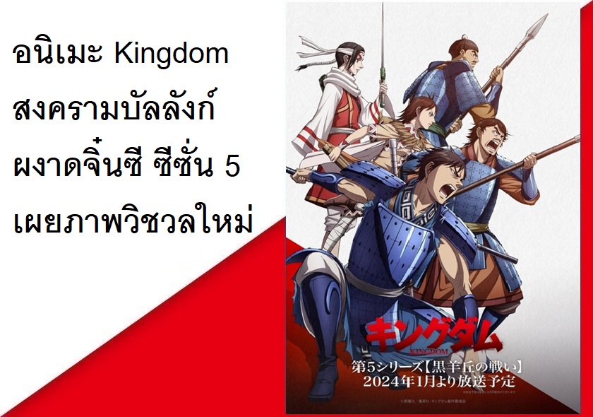 หลังจากที่อนิเมะ Kingdom สงครามบัลลังก์ผงาดจิ๋นซี ได้ประกาศสร้างซีซั่น 5 ไปเมื่อเดือนตุลาคมปีที่แล้ว ล่าสุดทวิตเตอร์ทางการของอนิเมะดังกล่าวก็ได้เผยภาพวิชวลใหม่ของซีซั่น 5 ออกมาแล้ว