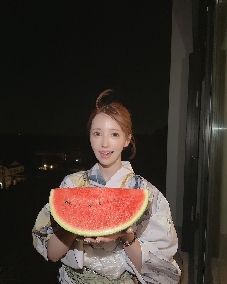 โดยคุณมิคามะได้โพสต์ภาพตัวเองในชุดยูกาตะสีขาวโดยมีวิวทะเลยามค่ำคืนเป็นฉากหลัง ภาพถือตะเกียบขณะรับประทานอาหาร พร้อมแคปชั่นว่า "พระจันทร์ ยูกาตะ ดอกไม้ไฟ และเนื้อ" และยังได้โพสต์วิดีโอที่กำลังนั่งรับลมทะเลริมชายหาดยามค่ำคืน